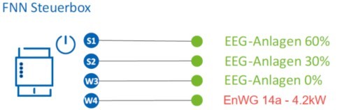 Die verbleibenden drei Relais können weiterhin für die EEG-Leistungssteuerung über die Rundsteuertechnik (RRCR) genutzt werden.